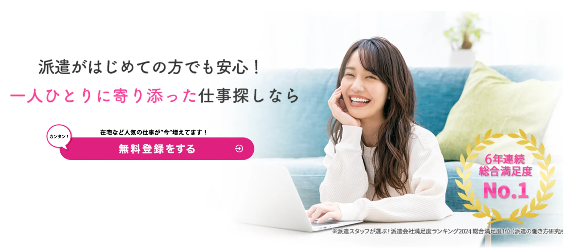 ※1 派遣スタッフが選ぶ!派遣会社満足度ランキング 2019~2024 総合満足度1位(派遣の働き方研究所)